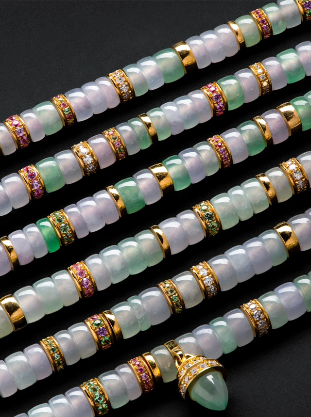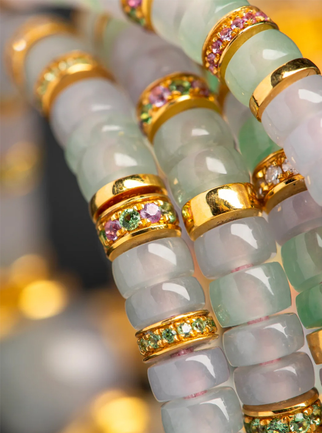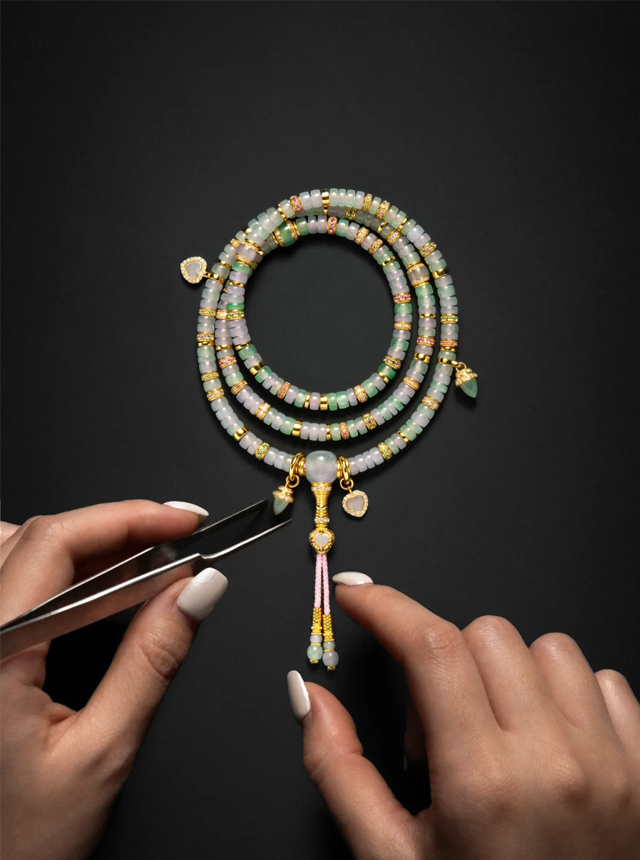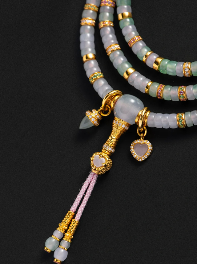 When jade transcends traditional contexts and collides with gold and diamonds to create cross-boundary aesthetics, this Spring in Color 108-bead set redefines the sophistication of Eastern jewelry through avant-garde design.