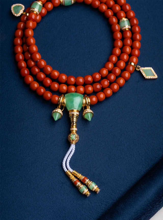 Imperial Style: 【Nanhong Jadeite Bracelet】108 Beads & Single Loop