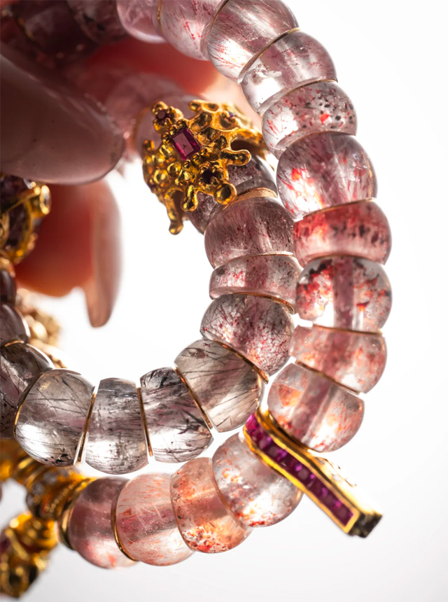 When Brazilian ultra-seven crystals meet artisan ingenuity, a galaxy of fireworks explodes upon the wrist! 🎆 Natural pyrotechnic patterns etch celestial trails, while beveled beads conceal gold foil secrets. Diamonds and colored gems become falling stars, each rotation a visual feast of dancing auroras. ✨